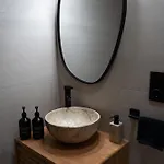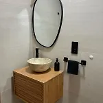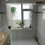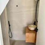 Bathroom facilities also include a shower and a washing machine. There are hairdryers and toiletries for guests' comfort.